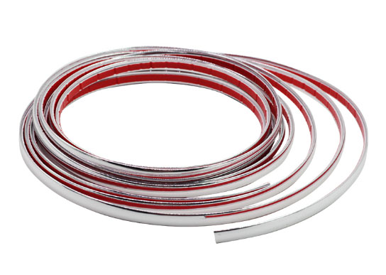 Universální samolepící chromová lišta vhodná například na boky vozidel, hranu nákladového prostoru, vhodná jako dekorace např. kolem, nárazníků, masek chladičů apod. Vysoce elegantní , snadná a rychlá montáž pomocí oboustranné lepící pásky.